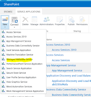 3. In Manage service applications, add new Managed Metadata service as shown in the screen below.